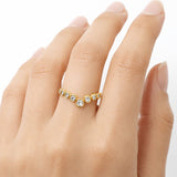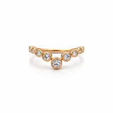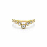 טבעת זהב עדינה בעיצוב קמור, משובצת יהלומים נוצצים היוצרים מראה אלגנטי והרמוני. השילוב בין זהב צהוב קלאסי לניצוץ היהלומים מעניק לטבעת נוכחות יוקרתית אך נקייה, המתאימה לענידה יומיומית וגם לאירועים מיוחדים. תכשיט על-זמני שמשלים כל סגנון ומדגיש נשיות ועדינות