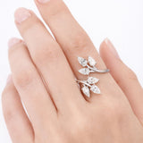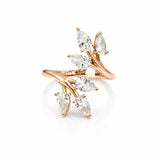טבעת יוקרתית בעיצוב עלים עדין, משובצת יהלומים בחיתוך מרקיזה המעניקים לה ברק טבעי ואלגנטי. העיצוב הפתוח והזורם משתלב בהרמוניה עם קווי היד ויוצר מראה נשי, רך ויוקרתי. טבעת מושלמת למי שמחפשת תכשיט מיוחד עם נוכחות עדינה שמתאימה גם ליום-יום וגם לאירועים מיוחדים