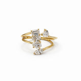 טבעת זהב ייחודית המשלבת קווים זורמים עם שילוב יהלומים בחיתוכים שונים ליצירת מראה מרשים ואלגנטי. העיצוב העדין מחבק את האצבע ומעניק נוכחות יוקרתית אך נשית, המתאימה לכל סגנון ולכל רגע מיוחד. טבעת שמביאה איתה זוהר, ייחוד ותחושת יוקרה על זמנית.