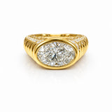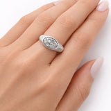 טבעת יוקרתית בעיצוב אלגנטי ונצחי, עשויה זהב לבן ומעוטרת יהלום מרכזי מרהיב בליטוש מושלם. השילוב בין קווים רכים לניצוץ היהלומים יוצר מראה עוצמתי ועדין כאחד. טבעת שמדגישה נוכחות, איכות וסטייל – הבחירה המושלמת לאישה שאוהבת יוקרה עם אופי.