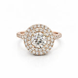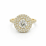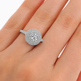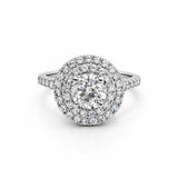 טבעת יוקרתית בעיצוב קלאסי ועל-זמני, עשויה זהב לבן ומשובצת יהלום מרכזי עגול ומרשים, המוקף בהילה כפולה של יהלומים קטנים להעצמת הברק. השיבוץ העדין והגימור המלוטש מעניקים לטבעת מראה אלגנטי, זוהר ומלא נוכחות – בחירה מושלמת להצעת נישואין או לרגע מיוחד שלא שוכחים.