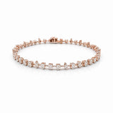 צמיד טניס אלגנטי עשוי זהב לבן, משובץ יהלומים בחיתוך מרקיז ומרובע לסירוגין, היוצרים מראה ייחודי ומלא נוכחות. השילוב בין העיצוב הקלאסי לנגיעות המודרניות מעניק לצמיד ברק עדין ויוקרה על־זמנית. מתאים לענידה יומיומית או לאירועים מיוחדים, ומשתלב בצורה מושלמת עם כל סגנון