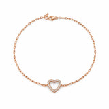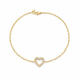 צמיד זהב עדין בעיצוב לב משובץ, המשלב אלגנטיות ורומנטיקה. תכשיט נשי ויוקרתי שמתאים לכל יום ולכל מראה