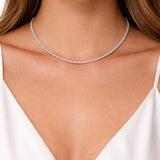 קולייר יהלומים קלאסי מזהב לבן הוא תכשיט על־זמני שמשדר יוקרה, ניקיון ואלגנטיות. שורת היהלומים המדויקת מונחת בעדינות על הצוואר ומדגישה כל הופעה – יומיומית או ערב. עיצוב מינימליסטי שמעניק ברק מושלם ומתאים לשילוב לבד או עם תכשיטים נוספים