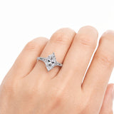 טבעת יוקרתית מזהב לבן בעיצוב אלגנטי ועדין, עם יהלום מרכזי בחיתוך מרקיזה המעניק ברק ונוכחות מרשימה. שילוב מושלם של קלאסיקה וסטייל מודרני, אידיאלי להצעת נישואין ולרגעים בלתי נשכחים