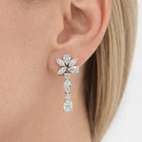 עגיל אלגנטי מזהב לבן, המעוטר בשילוב יהלומים בחיתוכי מרקיז ואגס, היוצרים מראה פרחוני עדין ונשי. העיצוב המדורג מעניק תנועה, ברק ונוכחות יוקרתית, ומתאים הן לאירועי ערב והן להשלמת מראה אלגנטי יומיומי. תכשיט על־זמני שמשלב רוך, זוהר ודיוק מושלם בפרטים