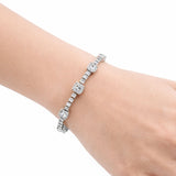 צמיד טניס יוקרתי בזהב לבן, משובץ יהלומים נוצצים בעיצוב קלאסי ואלגנטי. הצמיד משתלב בעדינות על היד ומעניק מראה יוקרתי ועל־זמני, מושלם לשימוש יומיומי וגם לאירועים מיוחדים. שילוב של איכות, נוחות וברק שמדגיש סטייל נשי ומעודן