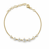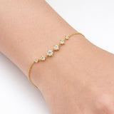 צמיד זהב עדין בעיצוב אלגנטי ועל־זמני, משובץ אבנים נוצצות המסודרות בקו הרמוני המדגיש את פרק כף היד. השילוב בין שרשרת זהב עדינה לניצוץ האבן יוצר מראה יוקרתי אך נקי, המתאים לענידה יומיומית וגם לאירועים מיוחדים. צמיד קלאסי שמוסיף נגיעה של זוהר וסטייל לכל הופעה