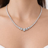 שרשרת יהלומים אלגנטית בעיצוב קלאסי ונשי, עשויה זהב לבן ומשובצת יהלומים מבריקים המסודרים בהרמוניה מושלמת. העיצוב המדורג עם מרכז מודגש מעניק נוכחות יוקרתית וזוהר עדין. שרשרת על־זמנית שמתאימה לאירועי ערב מיוחדים וגם להשלמת לוק אלגנטי יומיומי